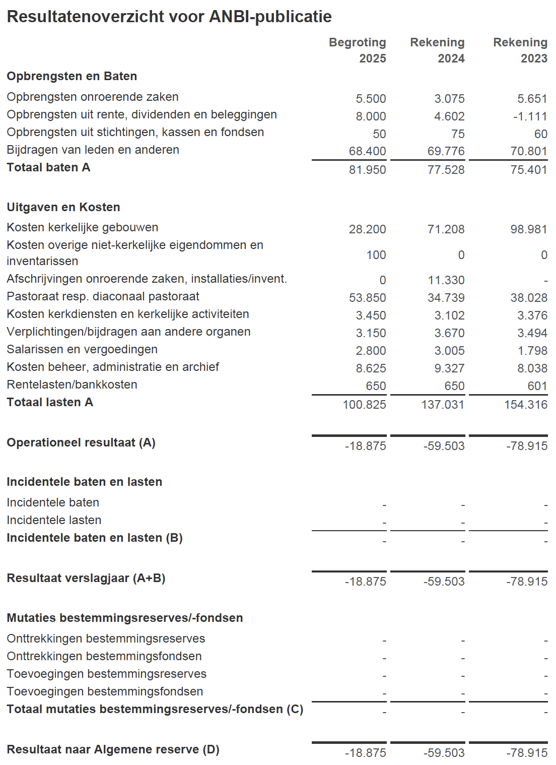 Daarnaast worden de ontvangen inkomsten ook besteed aan het in stand houden van de kerkelijke bezittingen, benodigd voor het houden van de kerkdiensten (zoals onderhoud, energie, belastingen en verzekeringen) en aan de kosten van de eigen organisatie (salaris koster, eventueel overig personeel, vrijwilligers) en bijdragen voor het in stand houden van het landelijk werk.